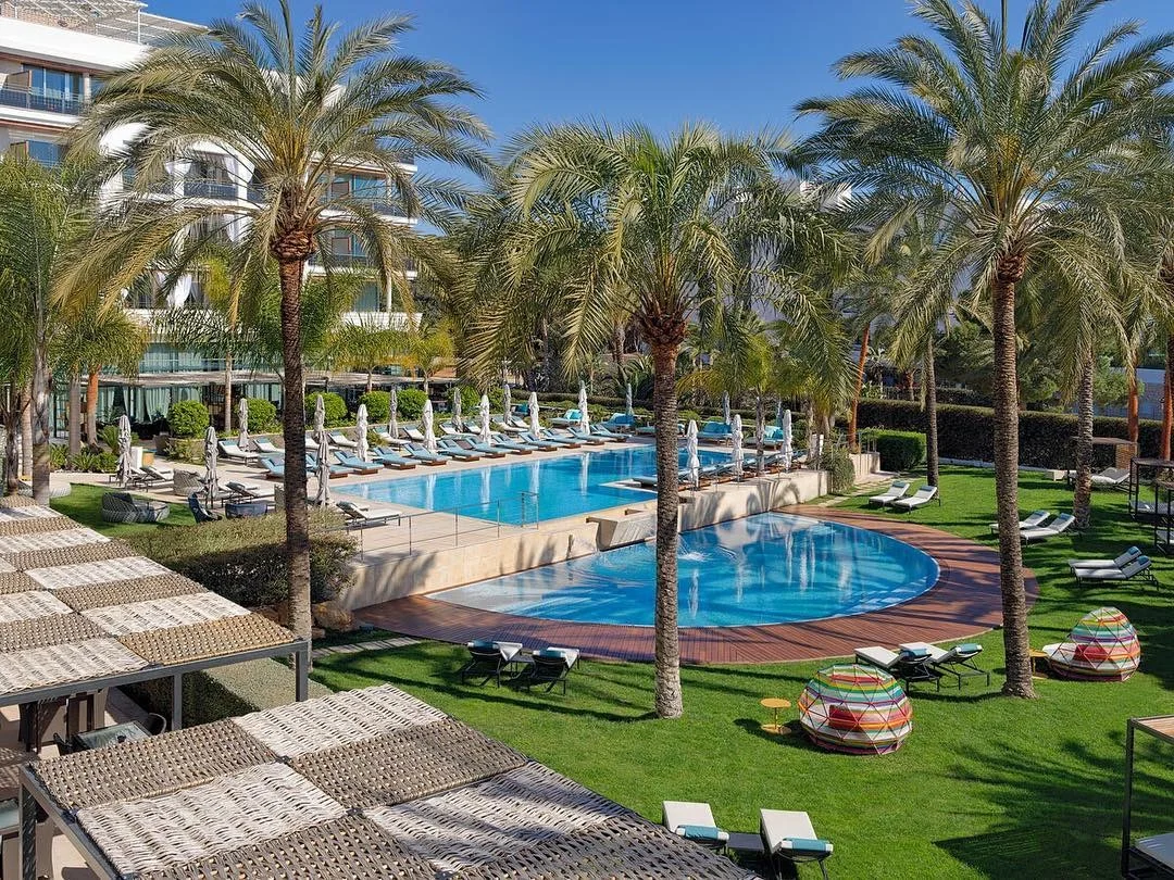 Luxury seafront hotel in Santa Eulalia. Onsite restaurants, and only a short walk to nearby bars / restaurants. The rooftop cocktail bar is where we'll be meeting for drinks on the Friday evening.