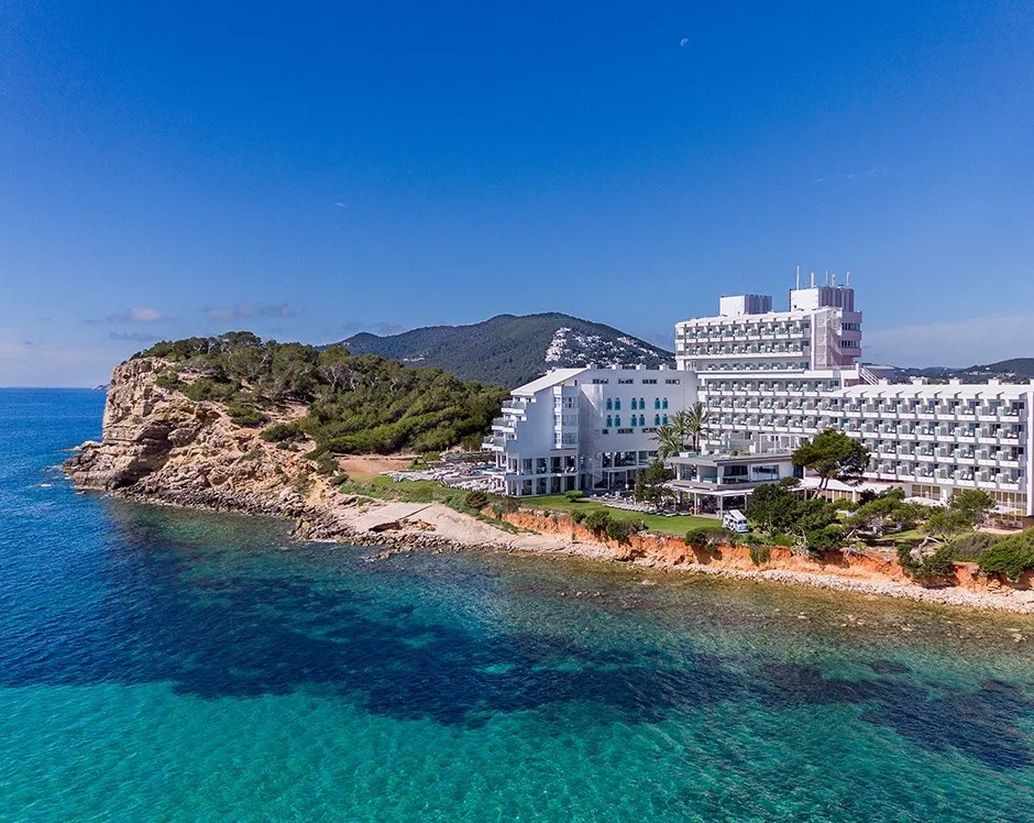Adult only seafront hotel, next door to Aquas De Ibiza so benefits from the same central location close to local amenities (500m from the centre of Santa Eulalia). Bar/Restaurant on site.